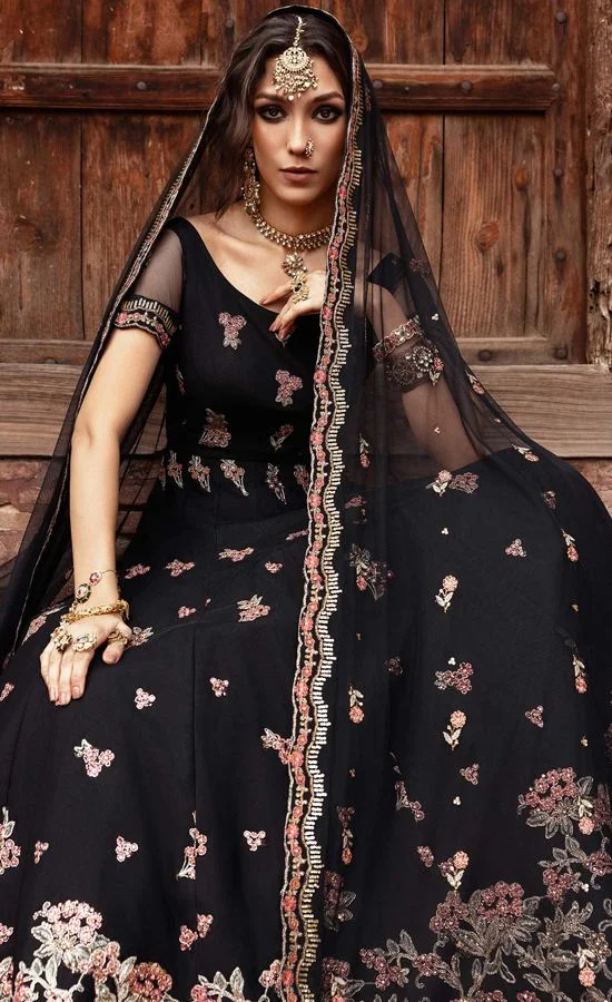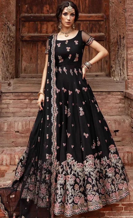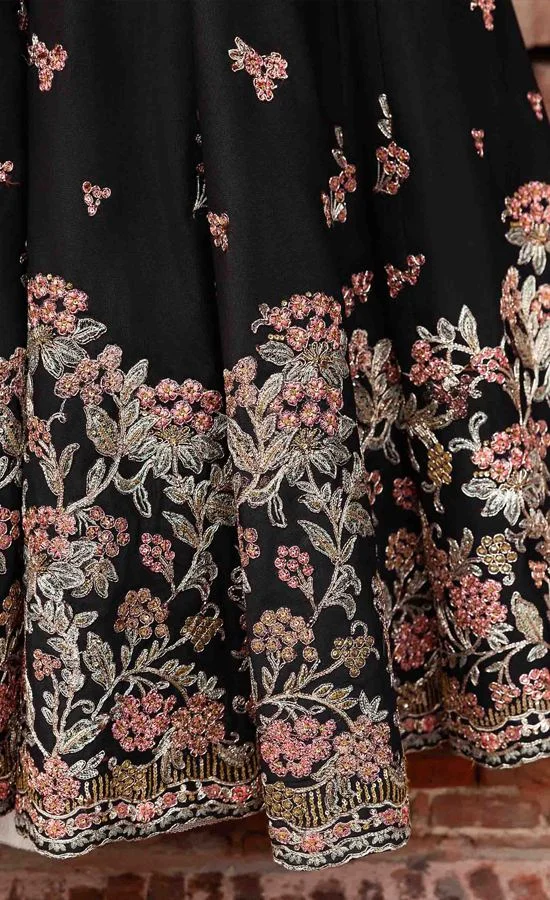 The crowning glory of this collection is the light net dupatta with embroidered borders on all sides. This finishing piece is ethereal and one of the best finishers in the collection. Ethereal is the word for this Black Maxi Dress and for those who love a delicate finish with a modern twist, this is the perfect outfit for you.