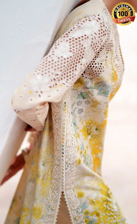 - Digital printed embroidered front 1 pc mustard printed lawn