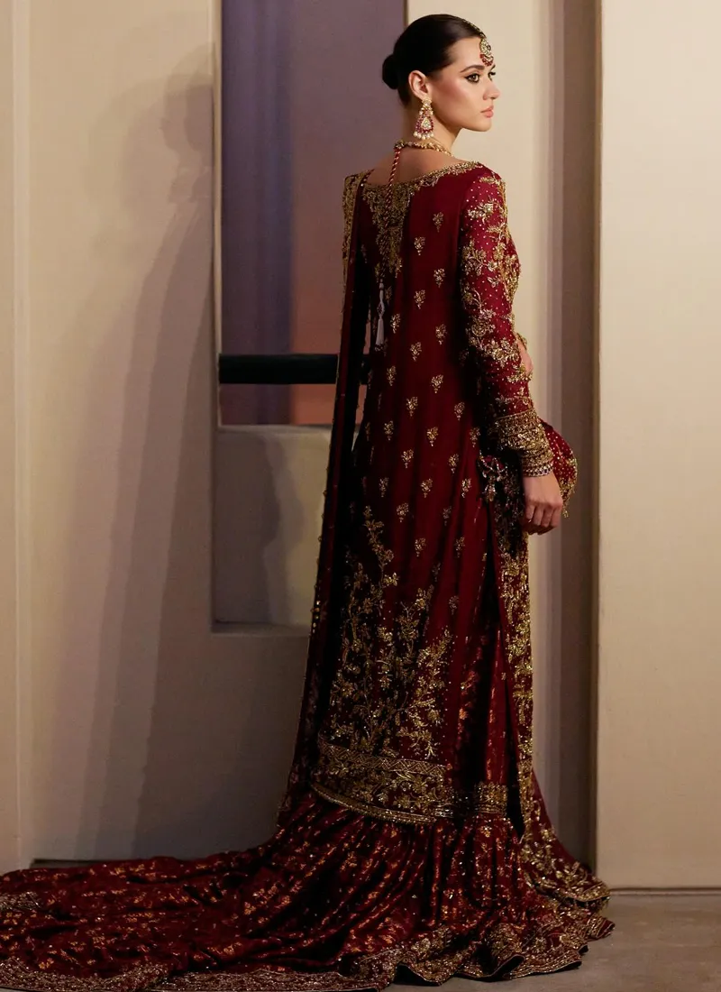 Deep Red Bridal Gharara Dress 16