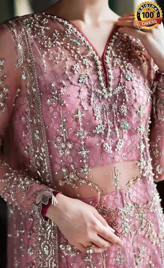 - Embroidered, sequined & hand embellished finishing lace (organza) 1