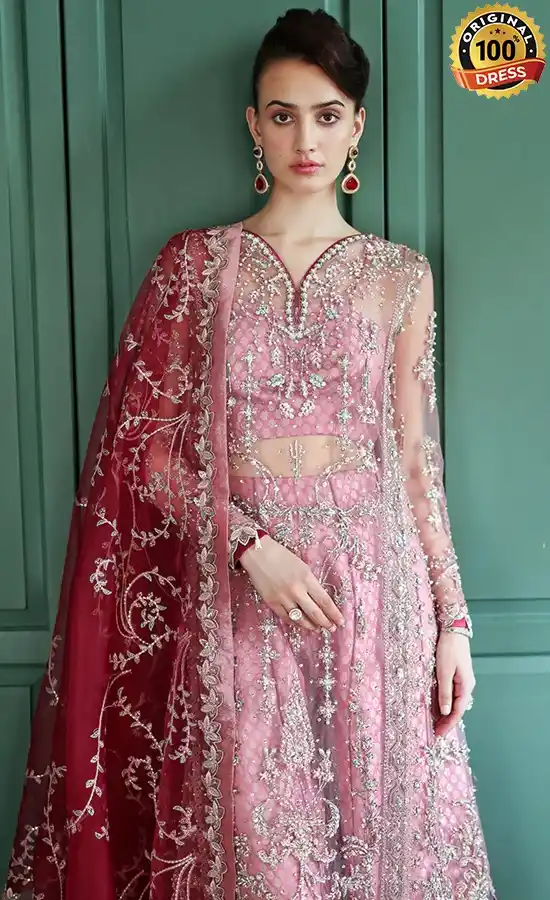 - Embroidered, sequined & hand embellished front daman border (organza)
